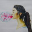 テーマはゆっくり回りながら高い所から低い所まですべての風景を見ることができる観覧車です。この観覧車のようにこれから世の中の大きい所から小さい所まで見ることができ、それを作品に表現するア―ティストになりたいという気持ちを込めて表現しました。